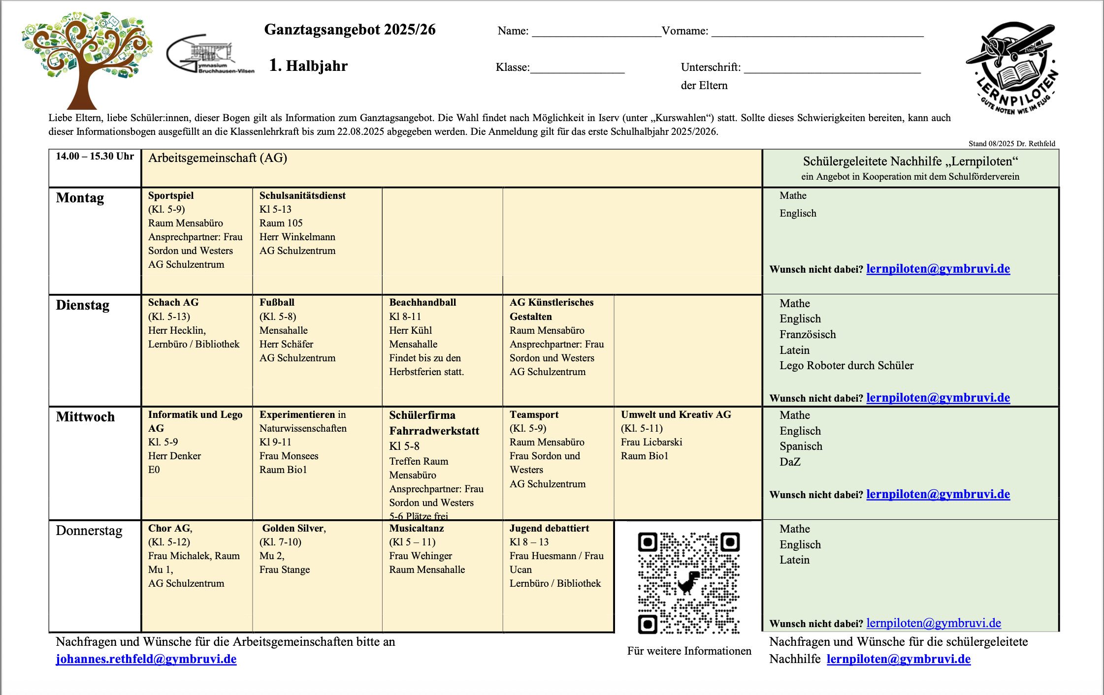 Dann freuen wir uns, wenn du in dieser AG dabei bist.