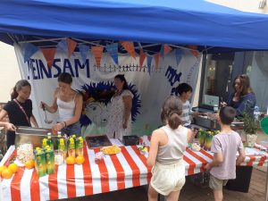 Am 16.9.2023 verkauften Frau Fiona Bendul, Frau Lena Brickwedel, Frau Kristina Brockmeyer, Herr Jörn Winkelmann und Schulleiterin Frau Elisabeth Peitzmeier-Stoffregen zusammen mit Schülerinnen vom Gymnasium (Anna-Catharina v. K., Sophie E., Daria R. und Sabrina R.) und der Oberschule (Lisa K., Lea-Sophie H.) Bruchhausen-Vilsen bei schönstem Sonnenschein leckere Cocktails beim Tag der offenen Tür im Kinderhospiz “Löwenherz” in Syke.