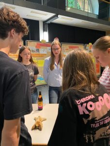 So reisten wir – eine Gruppe aus sechs Schülerinnen des elften Jahrgangs und einer Lehrerin – am 02.06.23 zur SchulBrücke für die Zukunft Europas nach Weimar, um zusammen mit anderen Jugendlichen aus der Slowakei, Ungarn, den Niederlanden, Italien und Deutschland eine Woche lang über unsere Länder, Europa und unsere eigenen Wünsche, Erwartungen und Zukunftshoffnungen zu diskutieren. In Arbeitsgruppen und Workshops erarbeiteten wir verschiedene Themen und wurden ständig neu gemischt. Dadurch entstanden vielfältige Kontakte. Die Frage, wie wir unsere Zukunft besser gestalten können, stand im Mittelpunkt. Diese wurde philosophisch und historisch erarbeitet, indem wir z. B. an einer historischen Vorlesung teilnahmen und u. a. philosophische Debatten führten. Dazu wurden ökonomische und ökologische Strategien entwickelt, um beispielsweise Städte für die Zukunft vorzubereiten, der Politik Denkanstöße zur Nachhaltigkeit zu geben und um soziale Spaltung zu verringern. Darüber hinaus erkundeten wir Weimar und setzten uns mit der Historie dieser Stadt auseinander. Insgesamt war der Austausch mit Schüler*innen aus anderen Ländern sehr interessant und eindrucksvoll, denn wir lernten neue Sichtweisen und Bildungssysteme kennen. Dazu hatten wir „internationale“ Zimmer, das bedeutet, dass wir mit Schülerinnen aus anderen Ländern auf einem Zimmer waren, wodurch wir diese besser kennenlernten. Dieser Austausch brachte uns die Möglichkeit, langfristige Kontakte zu knüpfen. Wir sind sehr dankbar für diese Zeit, denn diese Chance war einzigartig.