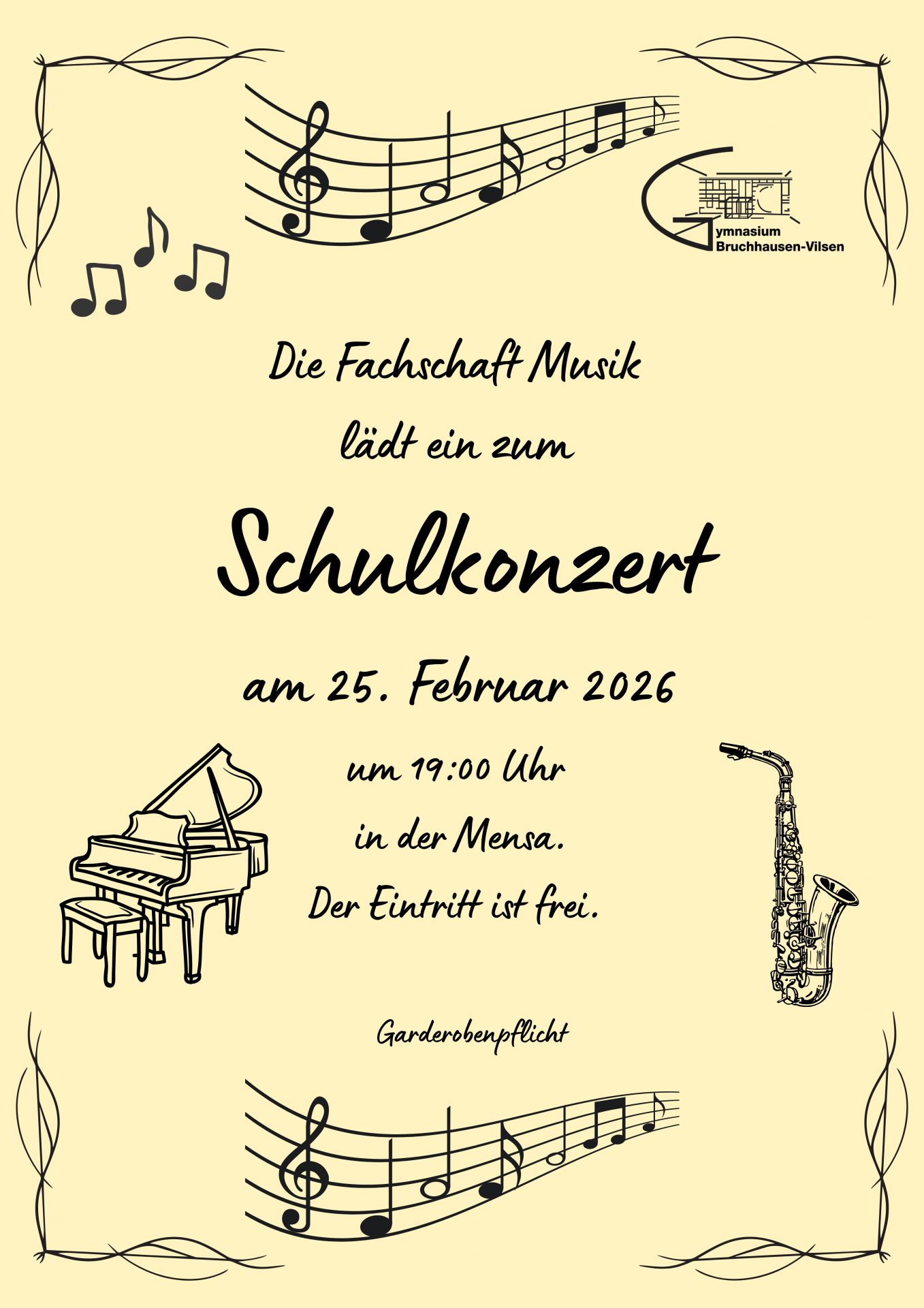 In der nächsten Woche vom 16.02. bis zum 20.02.26 fahren drei Kolleginnen, ein Kollege von der Oberschule und unser Schulassistent mit 92 Schülerinnen und Schülern auf die alljährlich stattfindende Musikwoche in die Jugendherberge in Müden an der Örtze, um dort für das Schulkonzert zu proben, was am 25.02.26 um 19:00Uhr in der Mensa stattfinden wird.