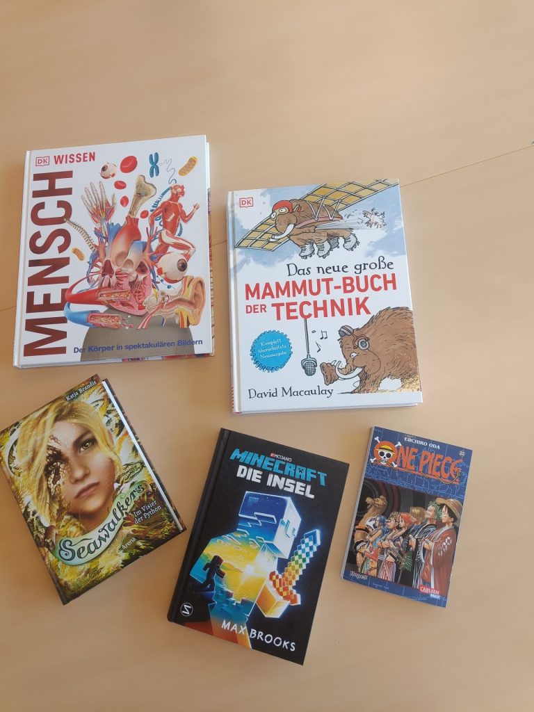 Wir haben spannende neue Bücher für euch eingekauft! Kommt vorbei und entdeckt sie in unserer Bibliothek. Wir freuen uns auf eure Meinung.