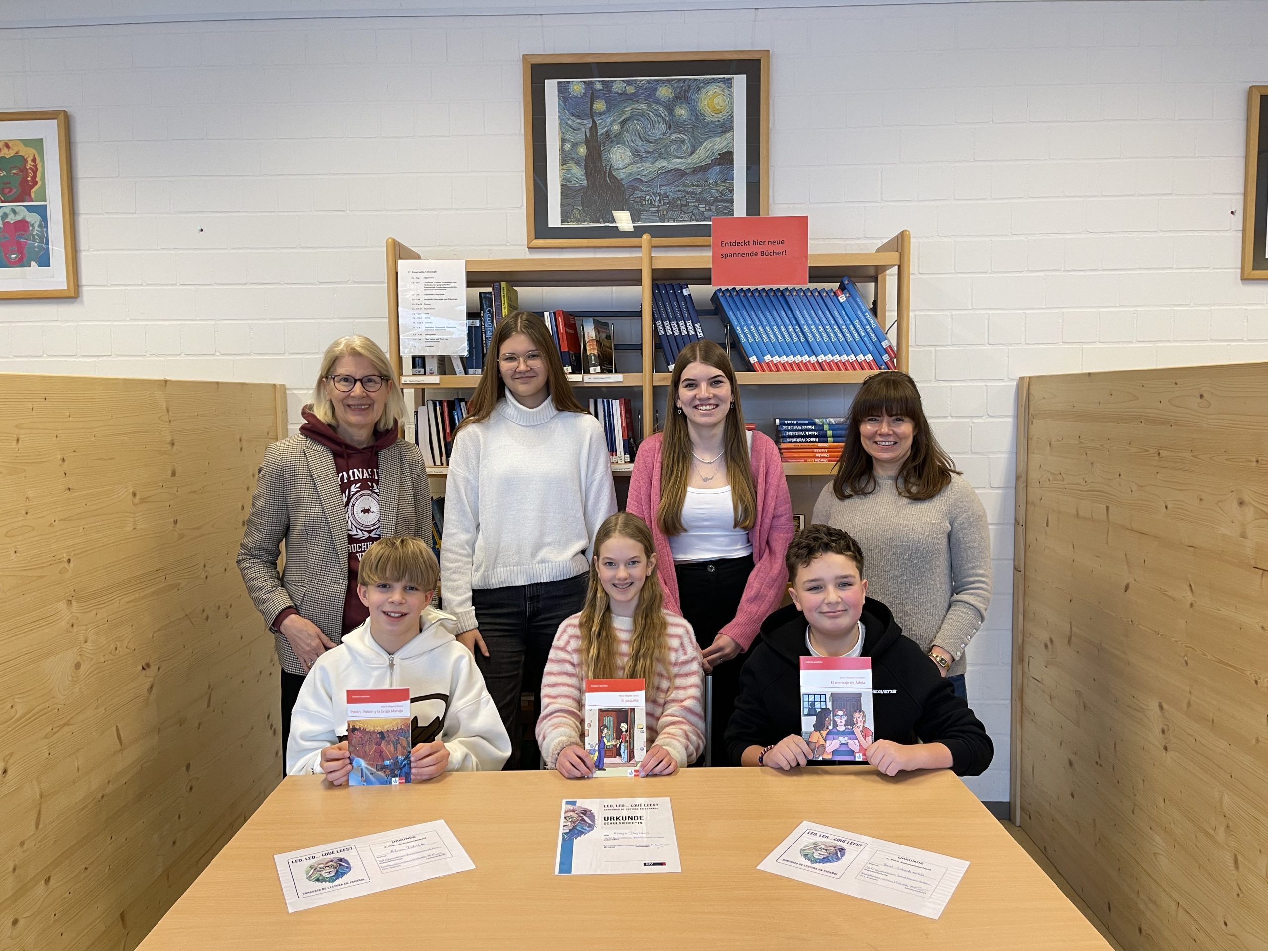 Auch in diesem Jahr wurde der spanische Vorlesewettbewerb „Leo, Leo… ¿Qué lees?“ des Deutschen Spanischlehrkräfteverbandes (DSV) am Gymnasium Bruchhausen-Vilsen durchgeführt. Dabei wird die Aussprache, die Intonation sowie der Textvortrag im Allgemeinen bewertet. Wie bereits im letzten Schuljahr nahmen SchülerInnen des 7. Jahrgangs daran teil. In diesem Jahr gab es allerdings auch einen Wettbewerb für den 9. Jahrgang unserer Schule. 46 niedersächsische Schulen nehmen in Jahrgang 7 teil, 22 Schulen in Jahrgang 9. Zunächst wurde in beiden Jahrgängen eine Vorrunde mit dem gesamten Spanischkurs durchgeführt. Danach erfolgte jeweils eine finale Runde unter den ersten fünf Plätzen. Unterstützt wurde Frau Pockrandt bei der Durchführung von Spanisch-SchülerInnen aus der 11g2, welche als JurorInnen tätig waren: Lina Blome und Franziska Temme in Jahrgang 7, Laura González Grisales und Maxim Behrendt in Jahrgang 9. Am 11. Februar hat das Finale in Jahrgang 9 stattgefunden: Siegerin war Lia Winter (9g1), gefolgt von Abigail Anlauf (9g2) auf Platz 2 und auf Platz 3 Samira Hadley (9g2). Am 13. Februar hat das Finale in Jahrgang 7 stattgefunden: Siegerin war Finnja Dryhaus (7g3), gefolgt von Kilian Batschke (7g2) auf Platz 2 und auf Platz 3 war Bent Schockemöhle (7g1). Finnja und Lia werden sich nun im Landesentscheid beweisen, wofür eine Audioaufnahme an den DSV zur Bewertung geschickt wird. Wir drücken die Daumen und wünschen viel Erfolg!